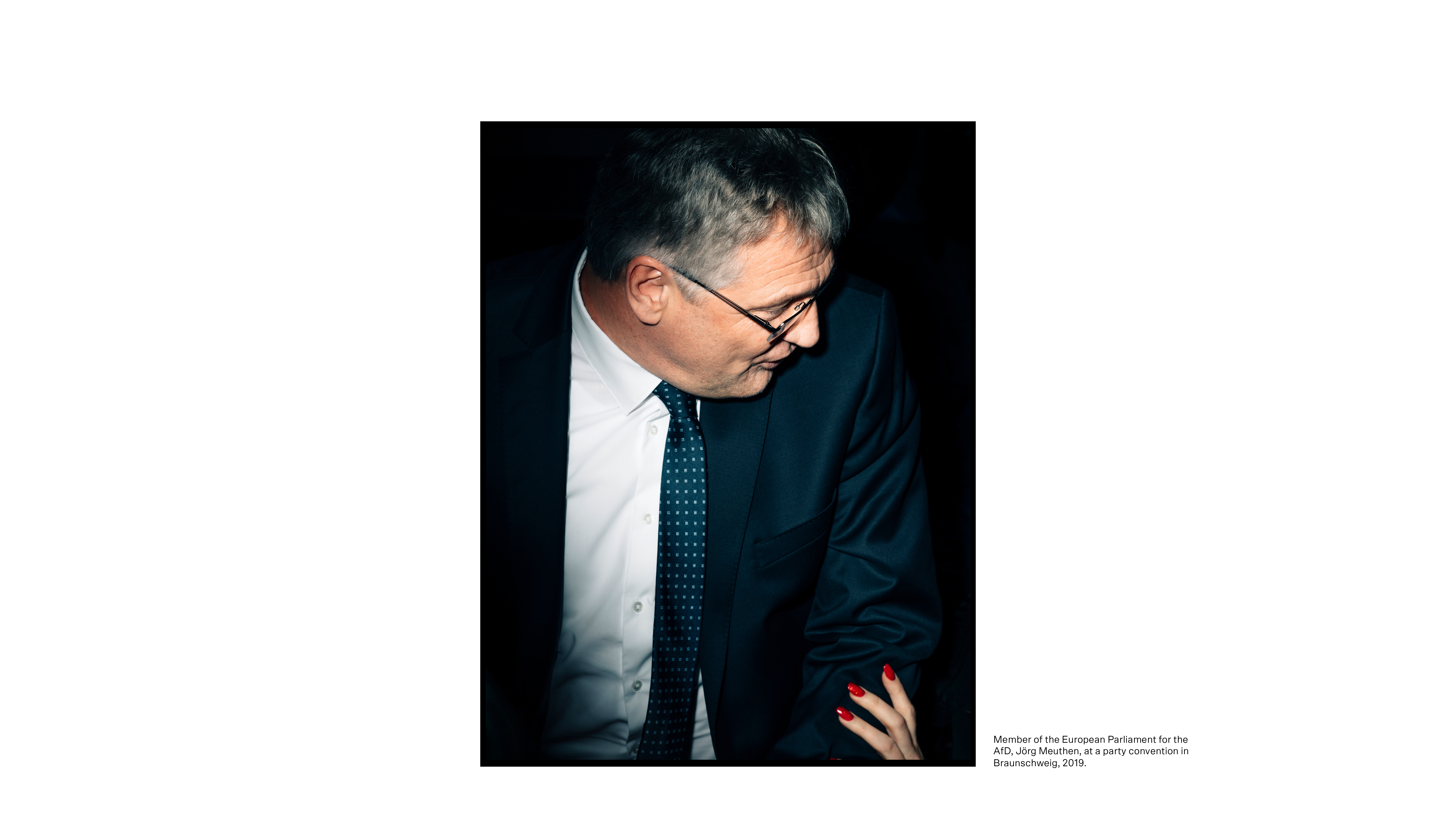 SPD. Beneath him, frenetic party members.